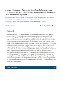 Brochure Literature Refractive Index Measurement of Waveguides by Imaging Ellipsometry (pdf) Refractive Index Measurement of Waveguides and Fibers by Imaging Ellipsometry (pdf) Spectroscopic Imaging Ellipsometry with New High Speed Measurement Mode (pdf) Coupled Topological Interface States (2021) Imaging Ellipsometry Determination of the Refractive Index Contrast and Dispersion of Channel Waveguides Inscribed by fs-Laser Induced Ion-Migration (2018)