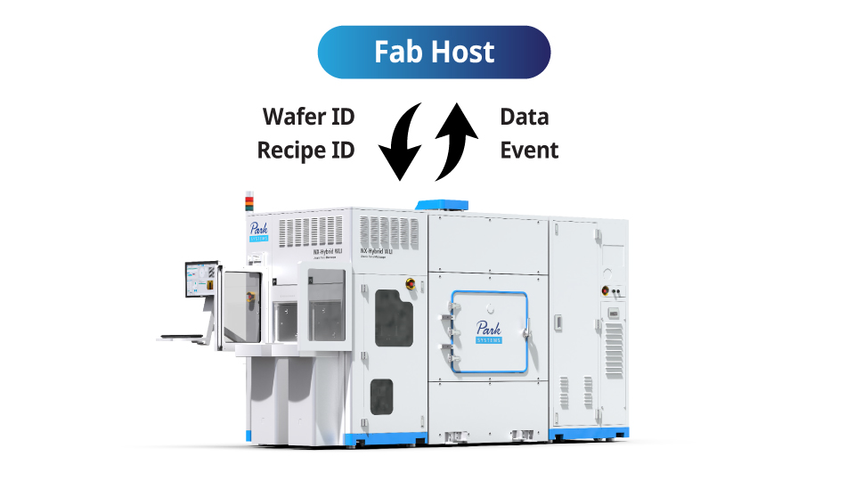 The NX-Hybrid WLI enables Fab host communication via the SECS/GEM protocol, ensuring full compliance with SEMI standards, including E30, E40, E87, E90, E94, and E84 PI/O for AMHS integration.