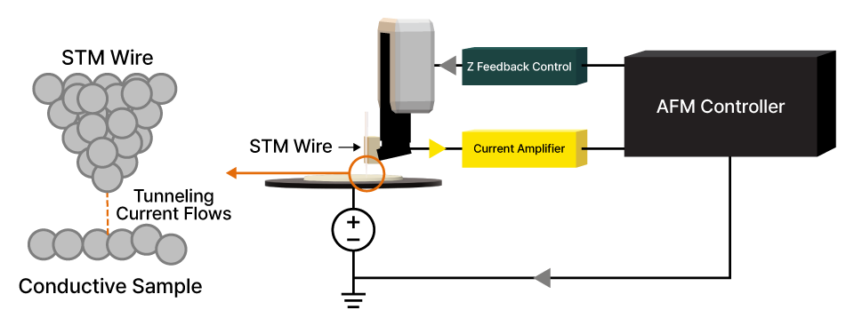 Atomic-scale electronic surface imaging based on tunneling current detection between tip and sample