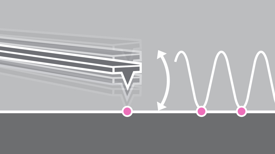 True Non-Contact™ Mode can also image tall features. Sensing attractive forces not only at the tip apex but also along its sides, as the tip approaches vertical features, the Z-servo can quickly retract the tip to climb over the wall.