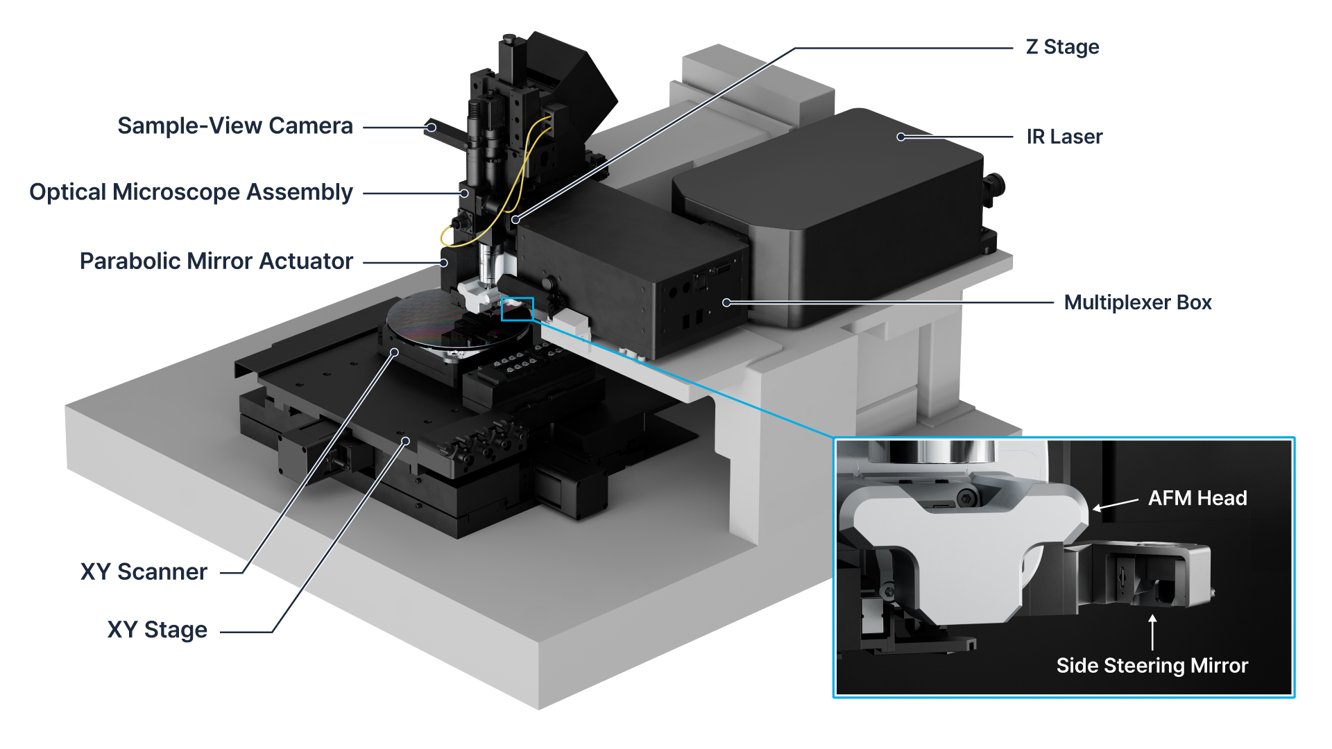 Park FX200 IR is Park Systems’ advanced AFM solution for nanoscale infrared spectroscopy and imaging, combining chemical and surface characterization. It is built on the proven FX200 platform supporting samples up to 200 mm, with low noise, minimal thermal drift, and high mechanical stability, ensuring reliable high-resolution metrology.