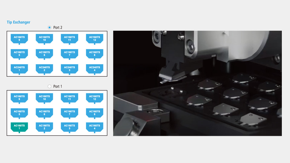 The automatic tip exchanger seamlessly replaces the probe when a threshold is exceeded. It can store up to 24 pre-mounted probes (12 probes per cassette).