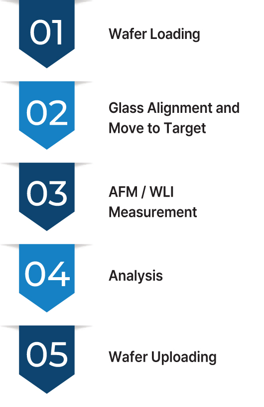 The NX-Hybrid WLI seamlessly integrates an automated industrial AFM system and a WLI profilometer on a single platform, replacing conventional two-tool solutions while reducing cost and tool footprint. It combines AFM and WLI into a unified workflow, enabling seamless switching between measurement modes within a single recipe depending on application requirements. The NX-Hybrid WLI supports fully automated operation from wafer handling to measurement and analysis, including automatic recipe execution, tip selection, multi-site scanning, data analysis, and report generation.