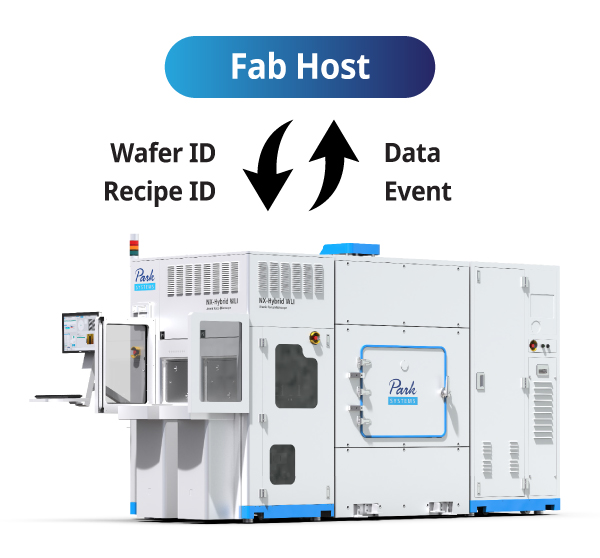 The NX-Hybrid WLI enables Fab host communication via the SECS/GEM protocol, ensuring full compliance with SEMI standards, including E30, E40, E87, E90, E94, and E84 PI/O for AMHS integration.