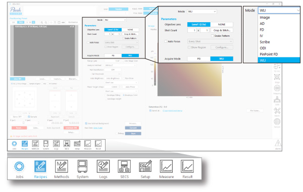 XEA software integrates AFM and WLI measurement and analysis into a single automated workflow, enabling seamless mode switching within a single recipe. It offers practical features such as easy recipe copy and paste, specialized editing modes, and real-time recipe updates. Built-in functions support comprehensive system operations, including parameter adjustment, database management, and maintenance, while maintaining an intuitive and user-friendly interface. The navigator provides an intuitive user interface that integrates system adjustment and operation.
