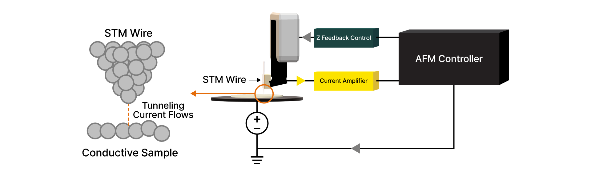 Atomic-scale electronic surface imaging based on tunneling current detection between tip and sample