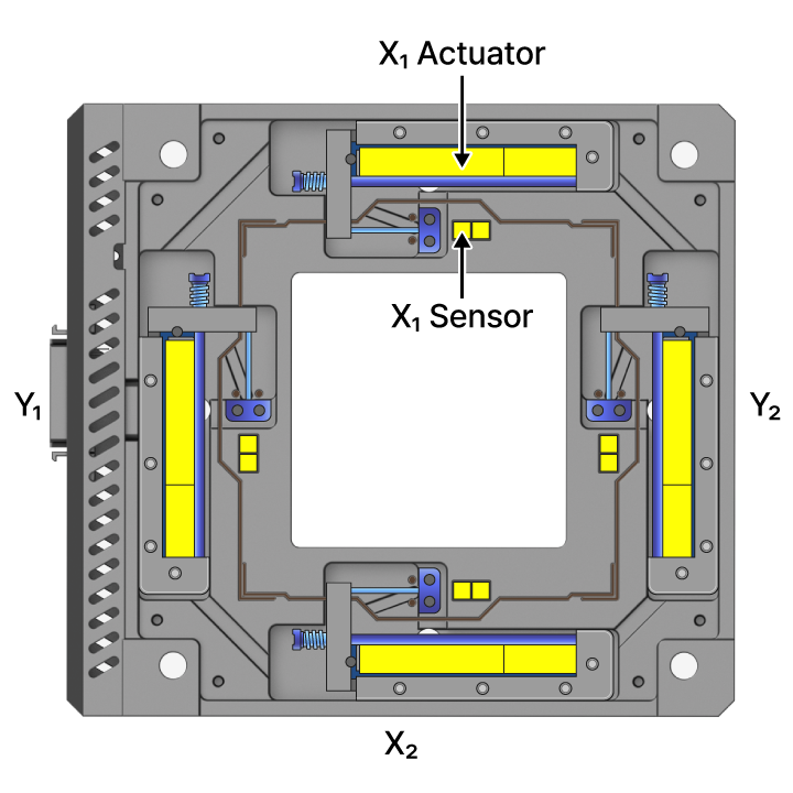 NX20 resolves this issue with a dual-servo XY scanner architecture, with two pairs of actuators and position sensors mounted on opposite sides of each axis. All four actuators are controlled independently to ensure accurate positioning across the entire 200 × 200 mm² sample area.